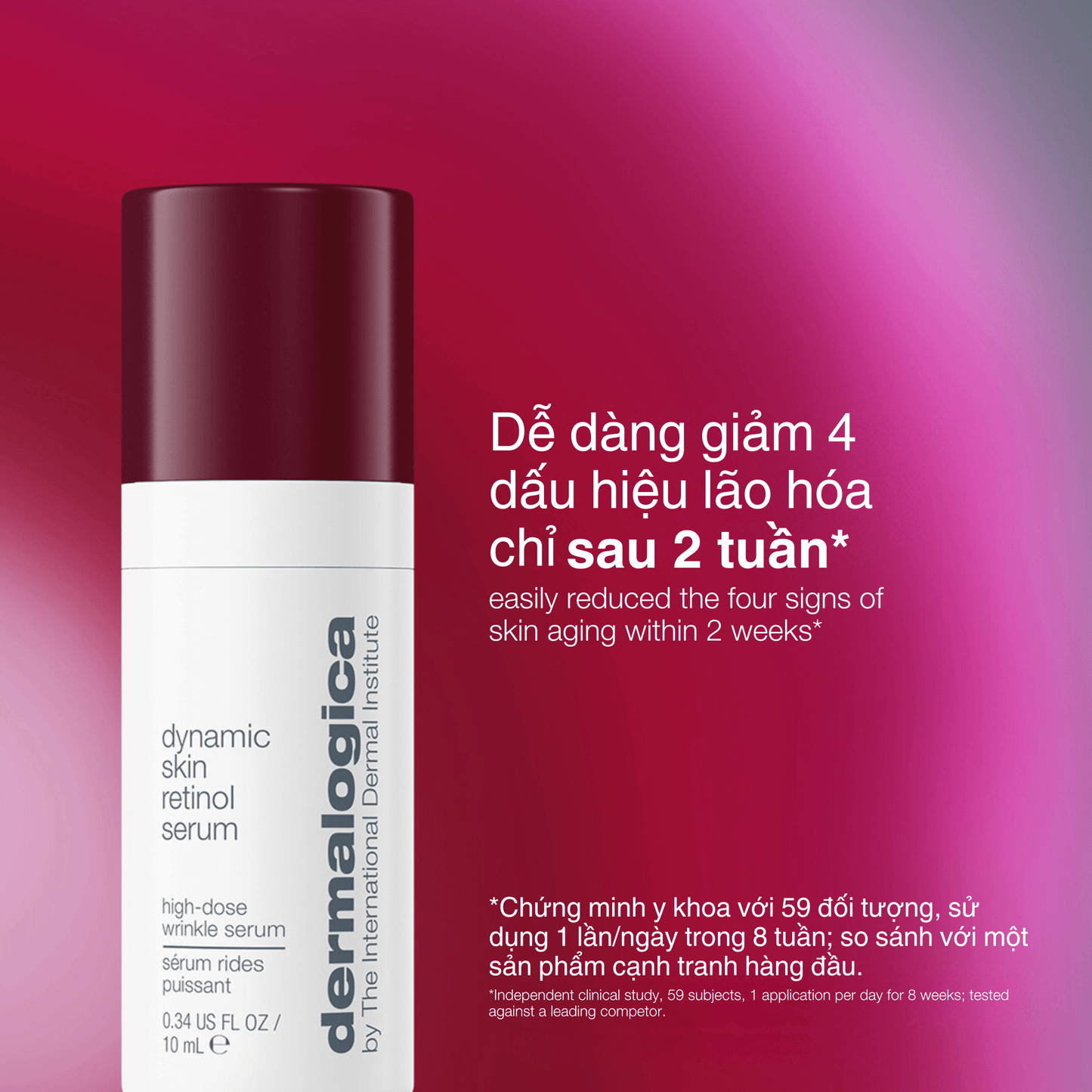 After cleansing, apply a thin layer of Dynamic Skin Retinol Serum over face. Keep out of eyes. Use nightly. If dryness or redness occurs, reduce frequency. If using Dynamic Skin Retinol Serum during the day, apply a generous amount of Dynamic Skin Recovery SPF50 to face and neck, preferably 30 minutes prior to sun exposure.