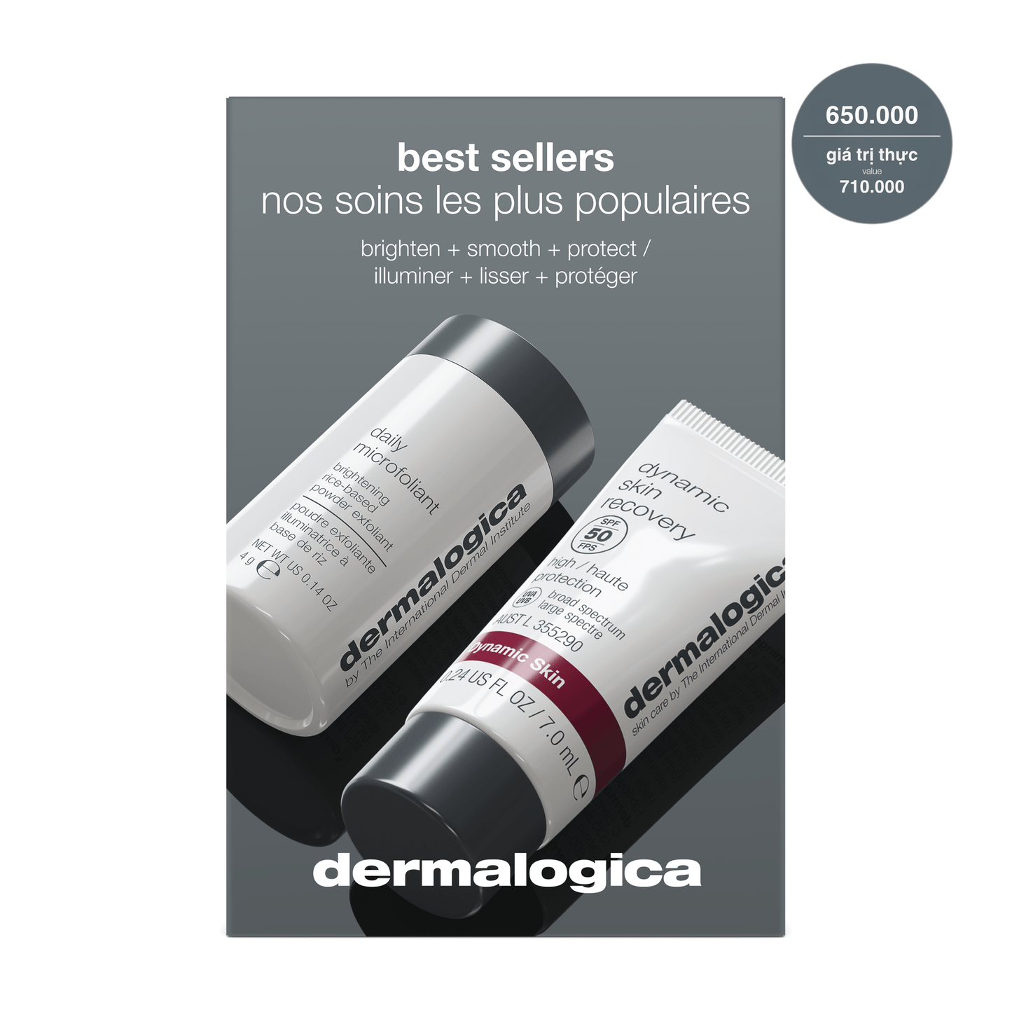 Transformative kit featuring our best selling Daily Microfoliant and Dynamic Skin Recovery SPF50. This perfect pairing delivers a double dose of skin health, starting with gentle yet powerful exfoliation and culminating in moisturization with sun protection for a visibly radiant and resilient complexion.