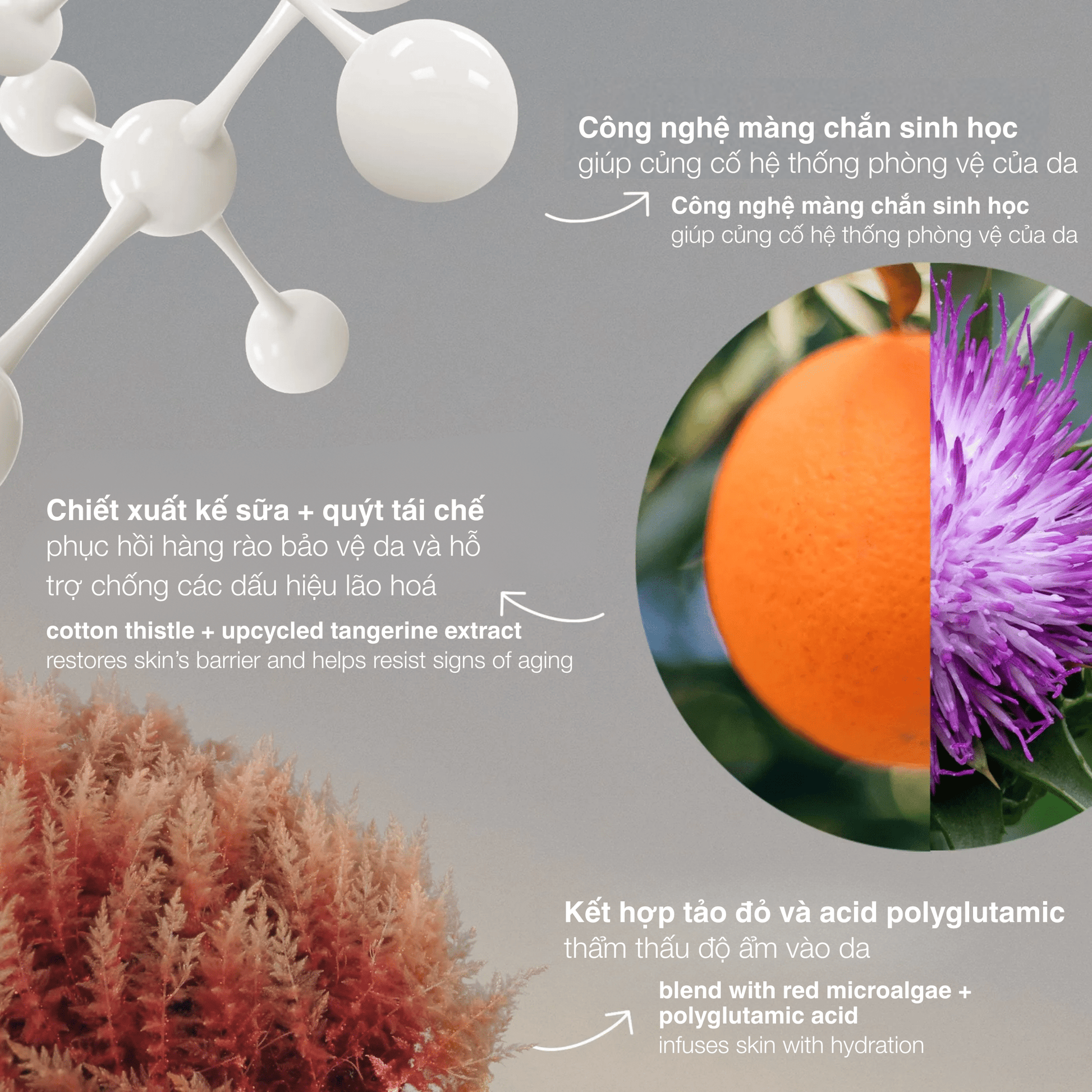 Age stronger: nourishing multi-defense serum builds barrier resilience to enhance endurance against skin-aging triggers. Milky serum powered by BioShield utilizes a biomimetic peptide, antioxidants and Squalane to help fortify barrier defenses. Evergreen Extract from a climate-resilient tree helps improve skin’s bounce-back and delivers a redensified look. Barrier-restoring Cotton Thistle and upcycled Tangerine Extract help skin recover and resist signs of aging. A blend with Red Microalgae hydrates for healthy-looking, more supple skin, while botanical extracts help soothe.