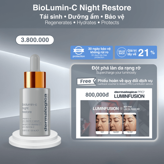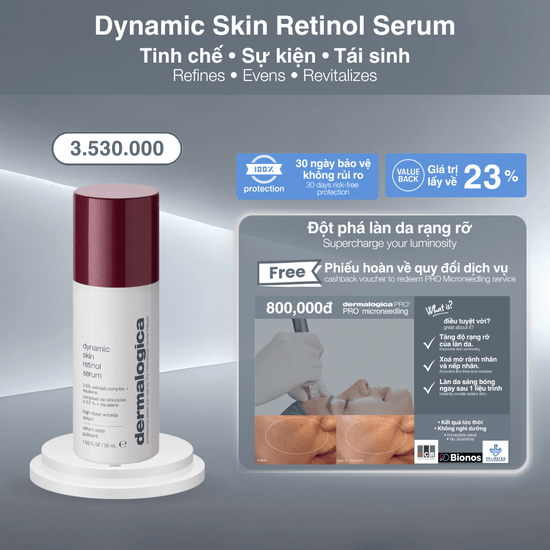 Hồi sinh làn da và bừng sáng vẻ rạng rỡ với bộ đôi biến đổi làn da từ Dermalogica. Dynamic Skin Retinol Serum BioLumin-C Serum kết hợp cùng nhau để xử lý các dấu hiệu lão hóa, da xỉn màu và kết cấu không đều—mang lại độ rõ nét và săn chắc thấy rõ từ giọt đầu tiên đến lớp cuối cùng.