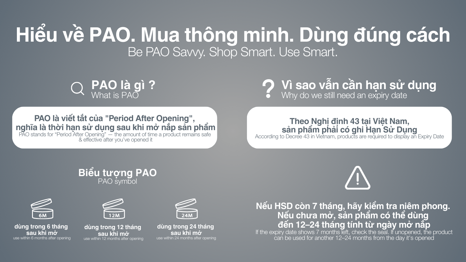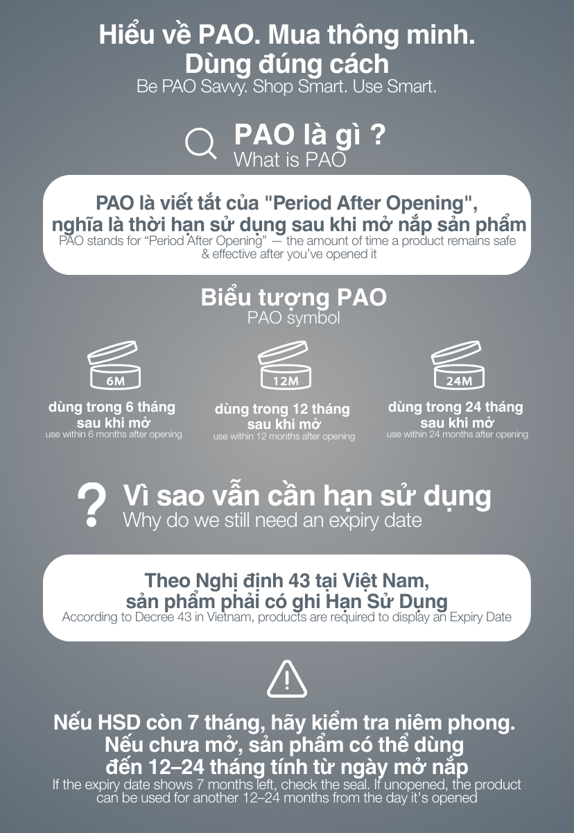 - PAO: áp dụng khi sản phẩm đã mở